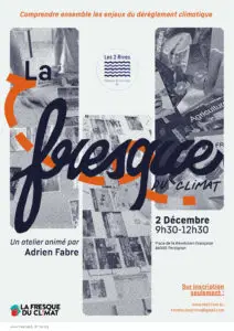 Rejoignez-nous pour l’atelier de la Fresque du Climat, animé par Adrien Fabre, afin d’en apprendre davantage sur le dérèglement climatique !