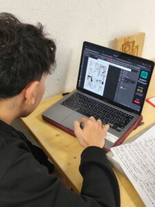 Un début d’année 2026 très mouvementé pour l’atelier Manga! Depuis la parution du premier tome en 2024, l’atelier Manga a beaucoup évolué. En effet, nous comptons 6 nouveaux dessinateurs et un projet. Nos jeunes ont commencé à expérimenter de nouveaux biais de création: le DAO (Dessin Assisté par Ordinateur).