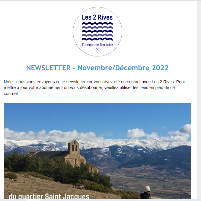 Note : nous vous envoyons cette newsletter car vous avez été en contact avec Les 2 Rives. Pour mettre à jour votre abonnement ou vous désabonner, veuillez utiliser les liens en pied de ce courriel.